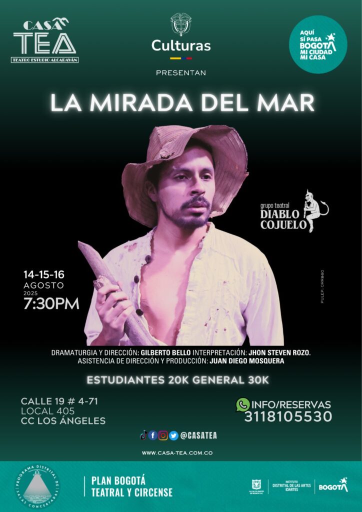 El grupo teatral “El Diablo Cojuelo” es un homenaje a las historias picarescas y a la oralidad, un conjunto conformado por artistas empeñados en un proyecto estético que pueda validar las condiciones, las circunstancias y los conflictos que viven en las sociedades emergentes. La obra “La Mirada Del Mar” tendrá sus funciones en CASA TEA del 14 al 16 de agosto a las 7:30pm.